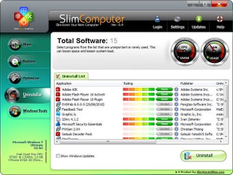 SlimComputer tem um visual bonito e é bem organizado. Utilizar a comunidade da internet para decidir se um programa é realmente útil ou se apenas ocupa espaço também é uma boa vantagem. Infelizmente o programa não tem muitas opções avançadas de configuração.