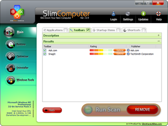 O SlimComputer procura principalmente quatro tipos de programas: barras de navegador (ou toolbar), programas de inicialização, atalhos e programas desnecessários. Para decidir que aplicativos não são necessários o SlimComputer utiliza a avaliação dos próprios usuários, através da tecnologia cloud (tecnologia das nuvens). Isso significa que o programa está sempre atualizado e, ao mostrar os comentários/avaliações de outros usuários, fica mais fácil decidir se um determinado software é útil ou não.